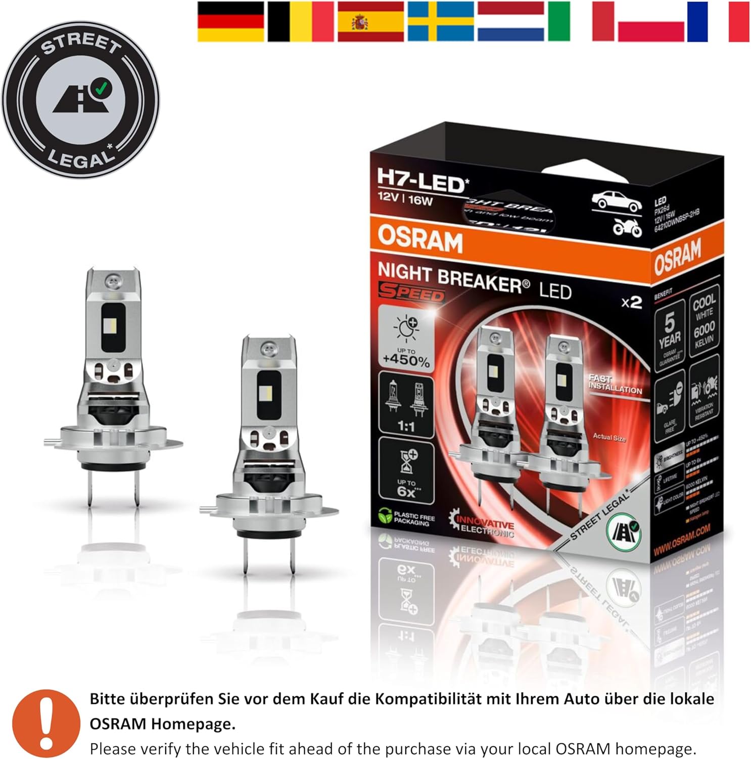 OSRAM Night Breaker H7 +450 LED SPEED 12V 6000K Straßenzulassung